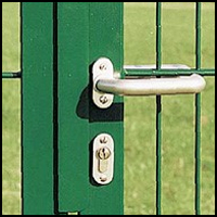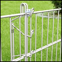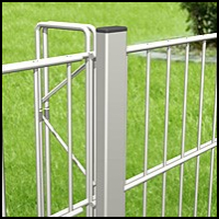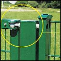 ermöglicht eine direkte Verbindung zweier Gitter, ohne Pfosten. Es gibt zusätzliche Sickerheits-Eckklemmen DEKRA geprüft, in passender Farbe